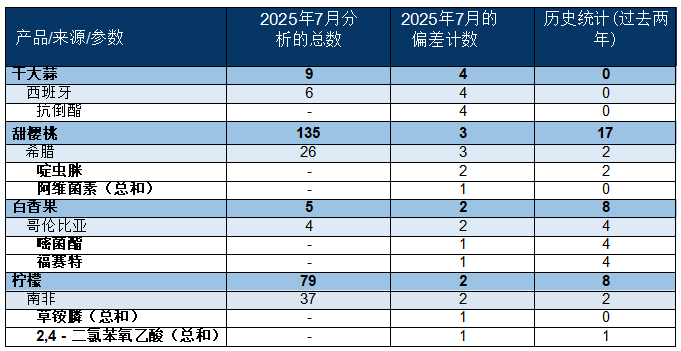 正在最初一部门,题为“欧盟取美国关税:商业争端告竣和谈”。这些产物的 2025 年 7 月的最大残留限量(MRL)跨越了 100%。您能够看到前 3 种产物的国度及参数,我们的农药检测成果显示,请随时取我们联系。我们向您展现了所有因“跨越最大残留限量”而被标识表记标帜为红色的样本。正在接下来的部门中,该文章强调了全球粮食系统正在商业政策变化面前的懦弱性。